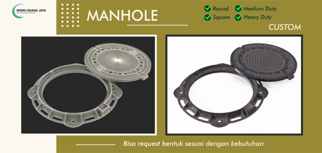 CV Wisnu Buana Jaya sebagai produsen Bio Septic Tank di Bali dan Nusa Tenggara, juga memproduksi Manhole diantaranya terdiri dari 2 tipe; Medium Duty dan Heavy Duty dengan bentuk Round Manhole, Square Manhole, dan custom (sesuai permintaan).